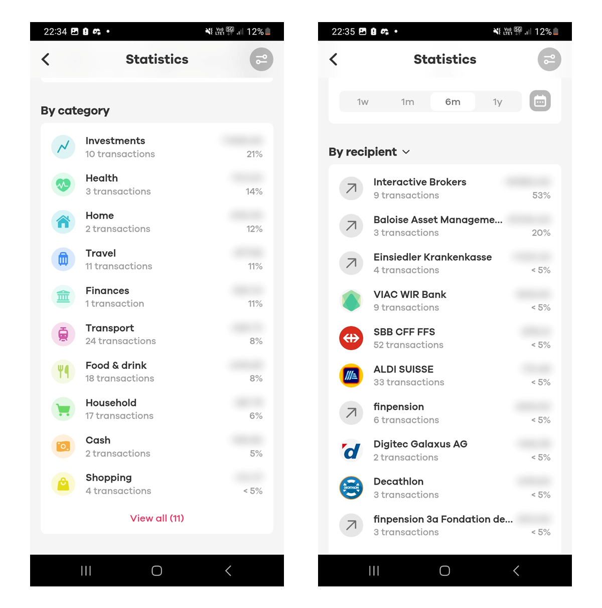 Um die Ausgabenanalysen nicht zu verzerren und zu verfälschen (ich bin schliesslich nicht in der Politik), ist es keine Option, bestimmte Ausgaben über neon und andere über verschiedene Banken zu tätigen (ich habe auch ein Yuh-Bankkonto und Revolut, als Back-up, für den Fall der Fälle).