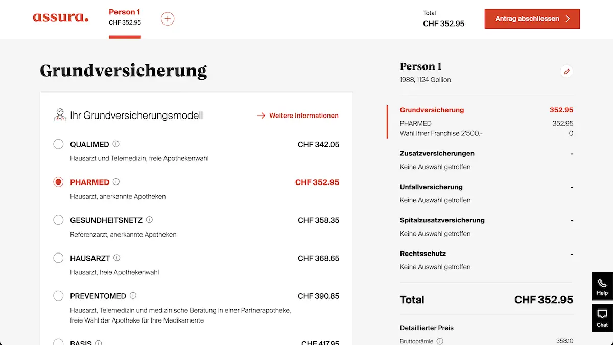 Wenn du auch deine Grundversicherung bei Assura abschliessen möchtest, dann habe ich ein paar Screenshots von deren Anmeldungsprozess (der recht gut gemacht ist) erstellt: